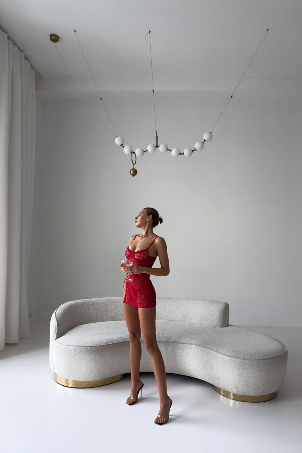 The fluid form of the front and side slits elevates the look with a balance of femininity and modern allure.